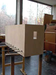wird mit 3 Kameras gefilmt und auf die gegenüberliegende Wand gescreent;